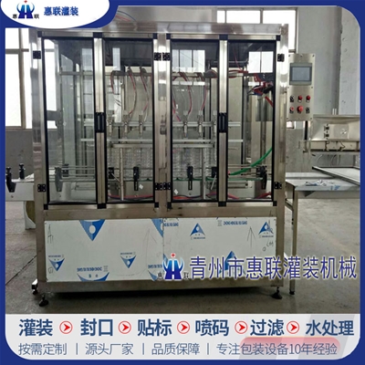 青州市惠聯灌裝機械有限公司是一家集生產研發、銷售、服務于一體的液體灌裝成套設備生產企業,可根據廠家要求設計合理液體灌裝生產線,為用戶提供技術咨詢、設計工藝、場區平面布置、工藝改造、設備安裝調試等完善服務。 公司生產制造各種類型液體灌裝機、過濾機,水處理設備及液體灌裝成套設備。主要產品有:白酒、葡萄酒、黃酒等酒水灌裝機、食用油、機油、潤滑油等油類灌裝機、醬油醋、老抽、生抽等調味品灌裝機、防凍液、玻璃水灌裝機、酒精、84消毒液灌裝機、車用尿素灌裝機、口服液灌裝機、洗滌劑灌裝機等多種液體、膏體灌裝設備,全自動/半自動灌裝機型號多,規格全,洗瓶機、瓶子封口機、打塞機、熱縮機、瓶子烘干機、貼標機、噴碼機、輸送線、裝箱機、水處理設備等全套生產線相關配套設備齊全,自產自銷,一站式購齊,售后無憂。